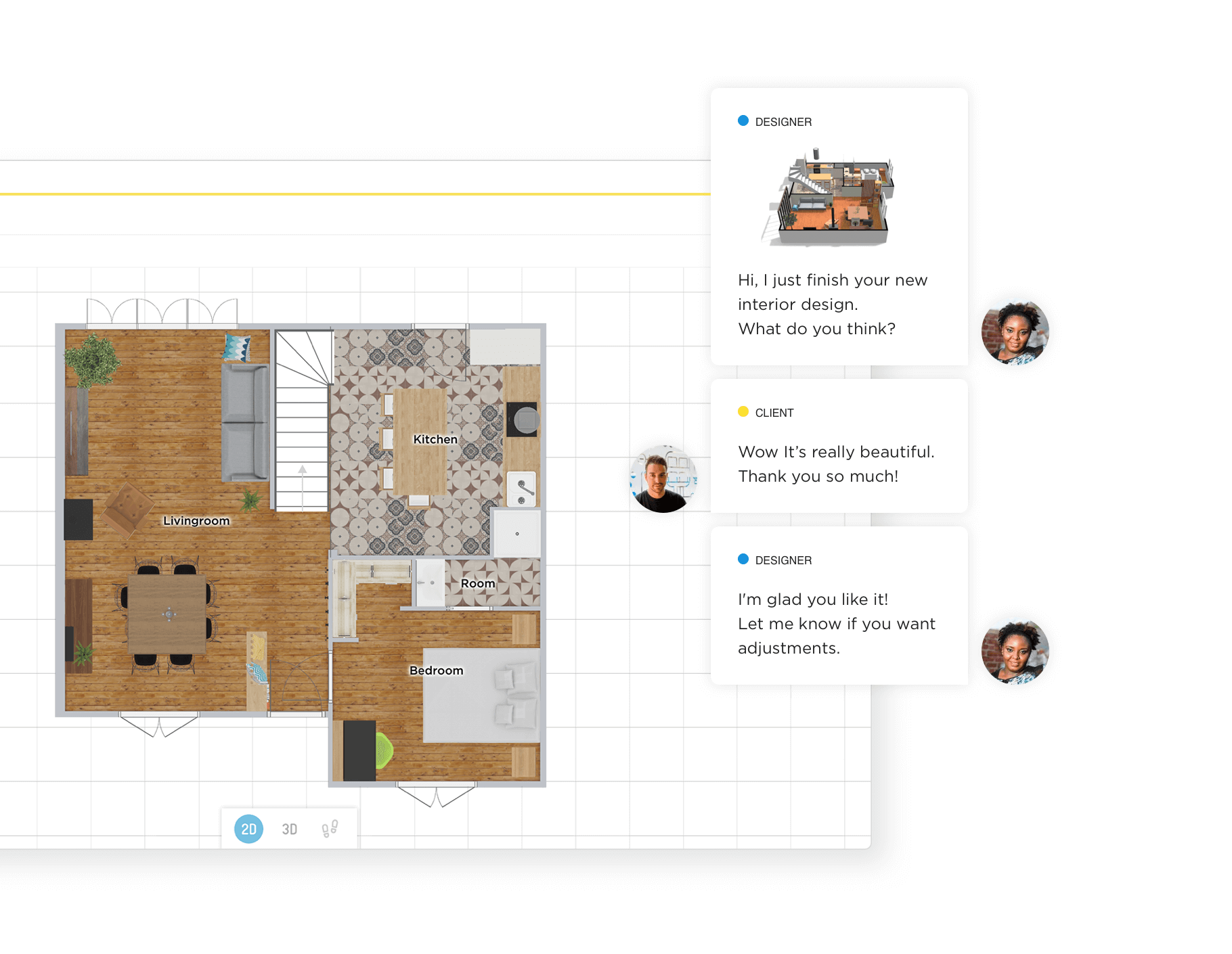 With HomeByMe, you can modify your project in real time during your customer meetings and better adapt to their requests.