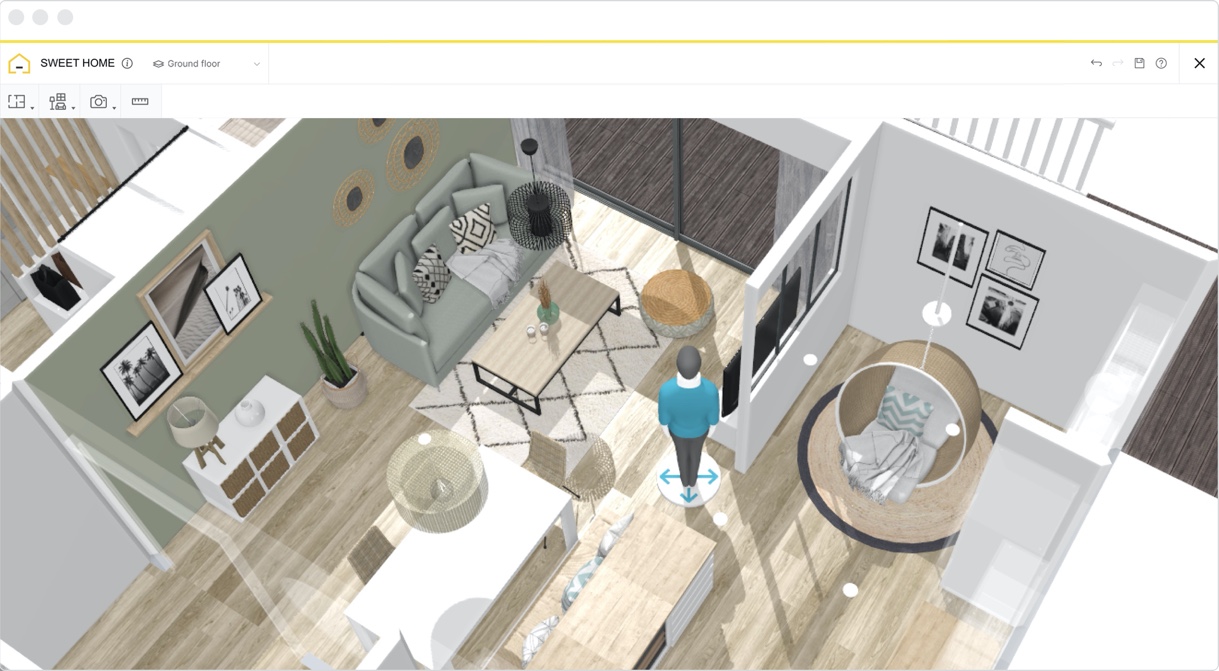 Discover every inch of your new home with HomeByMe’s Live Floor Plan, an interactive viewing mode, which allows you to take a virtual walkthrough of your 3D floor plan. As you switch to the first-person viewing mode, and move your avatar through your home, our advanced 3D graphics move seamlessly with you. Test the circulation within your home and imagine yourself in your new space, as you continue to make modifications to your design.