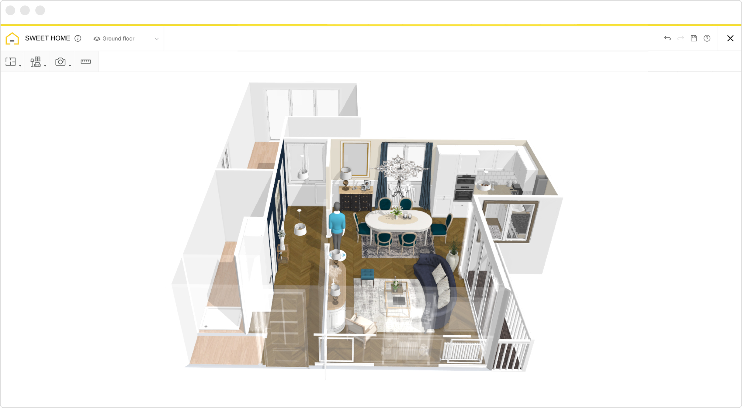 HomeByMe is highly intuitive to use. Choose and arrange furniture in your 3D floor plan by inserting products from our extensive catalog and dragging them into place. Select from brand-name retail products or generic products that can be customized to suit your floor plan design. Take measurements of your 3D floor plan using the ruler tool and check surface areas in an instant.