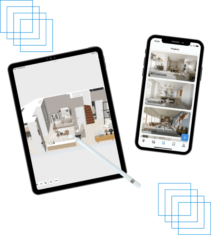 Find inspiration to furnish and decorate your home in 3D or create your project on the go with the mobile app!