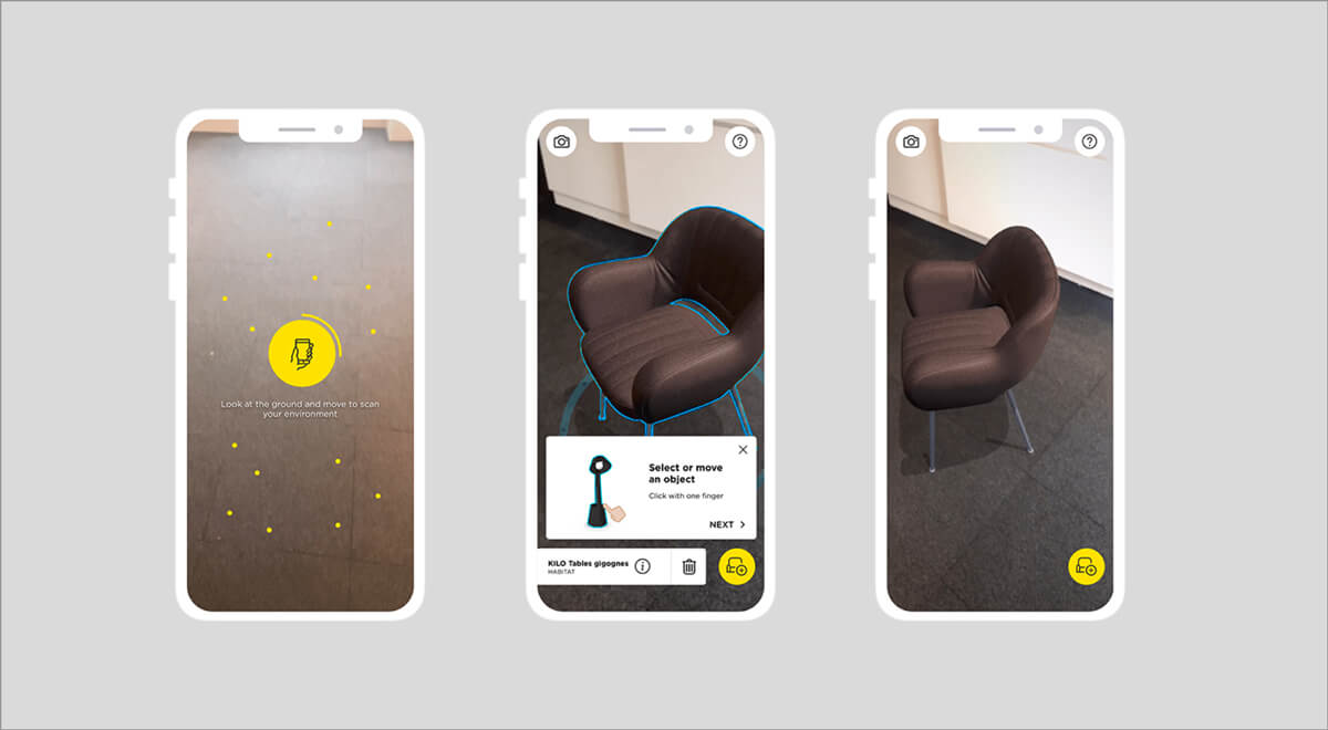 Furnish your home with Augmented Reality! Take the stress and indecision out of furniture shopping by visualizing your favourite pieces in your home, before making any purchases. Our AR application allows you to use your iPhone or iPad to select products from the HomeByMe catalog, then scan your room and view the selected furniture, to scale, in your home. Take a photo within the app and share it online with friends for a second opinion! Learn more about how you can use Augmented Reality to design your home.