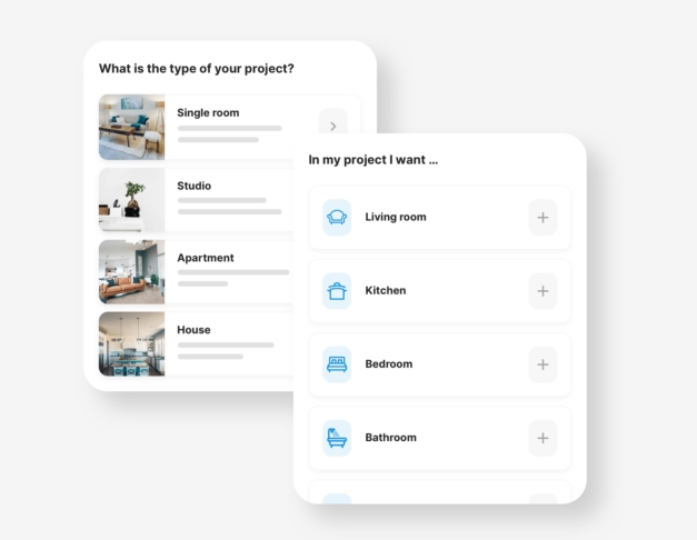 Find inspiration to furnish and decorate your home in 3D or create your project on the go with the mobile app!